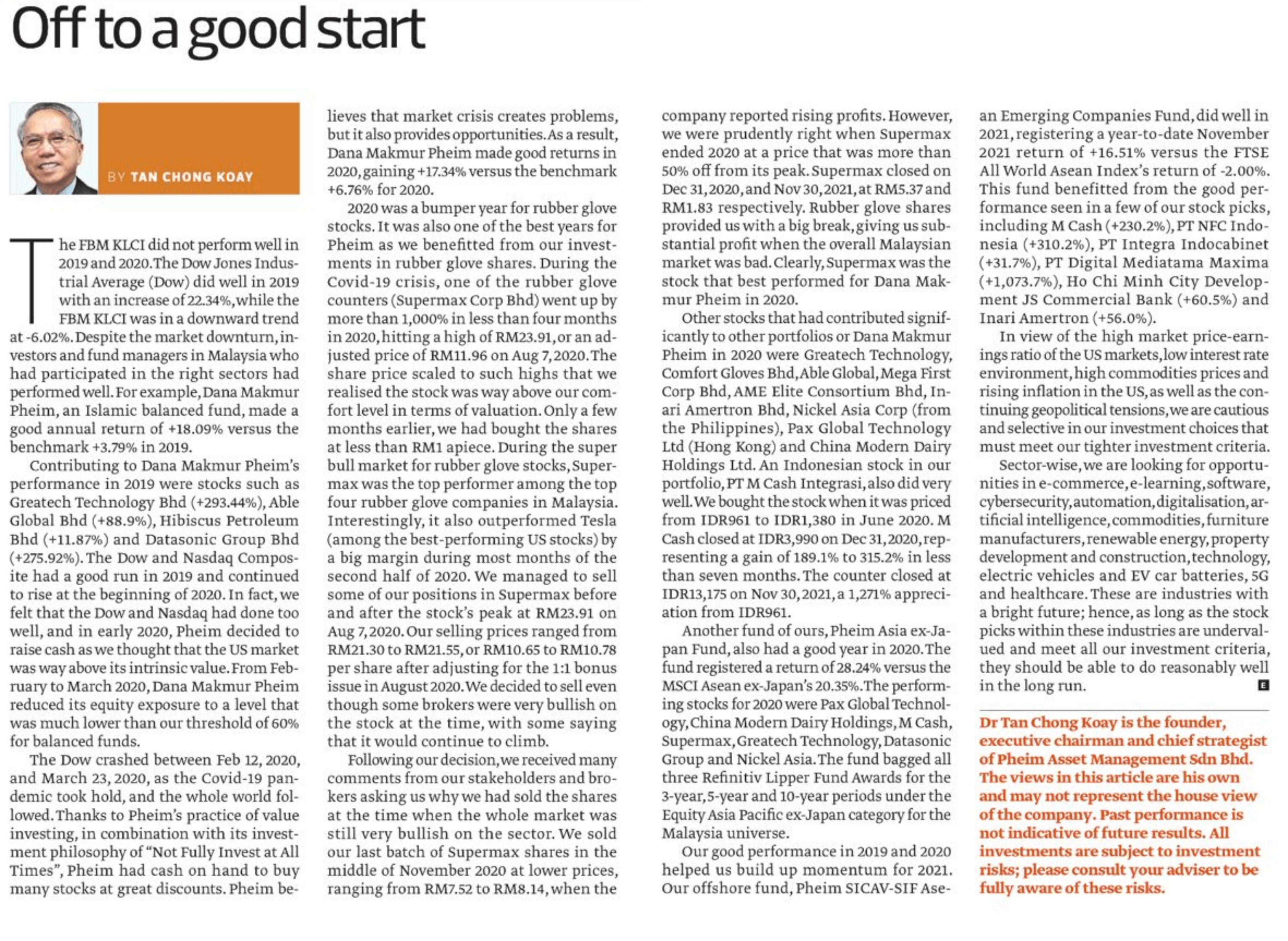Dana Makmur Pheim has been chosen to be among FSMOne Recommend Unit Trust Fund for 2020/2021 & 2021/2022 under the