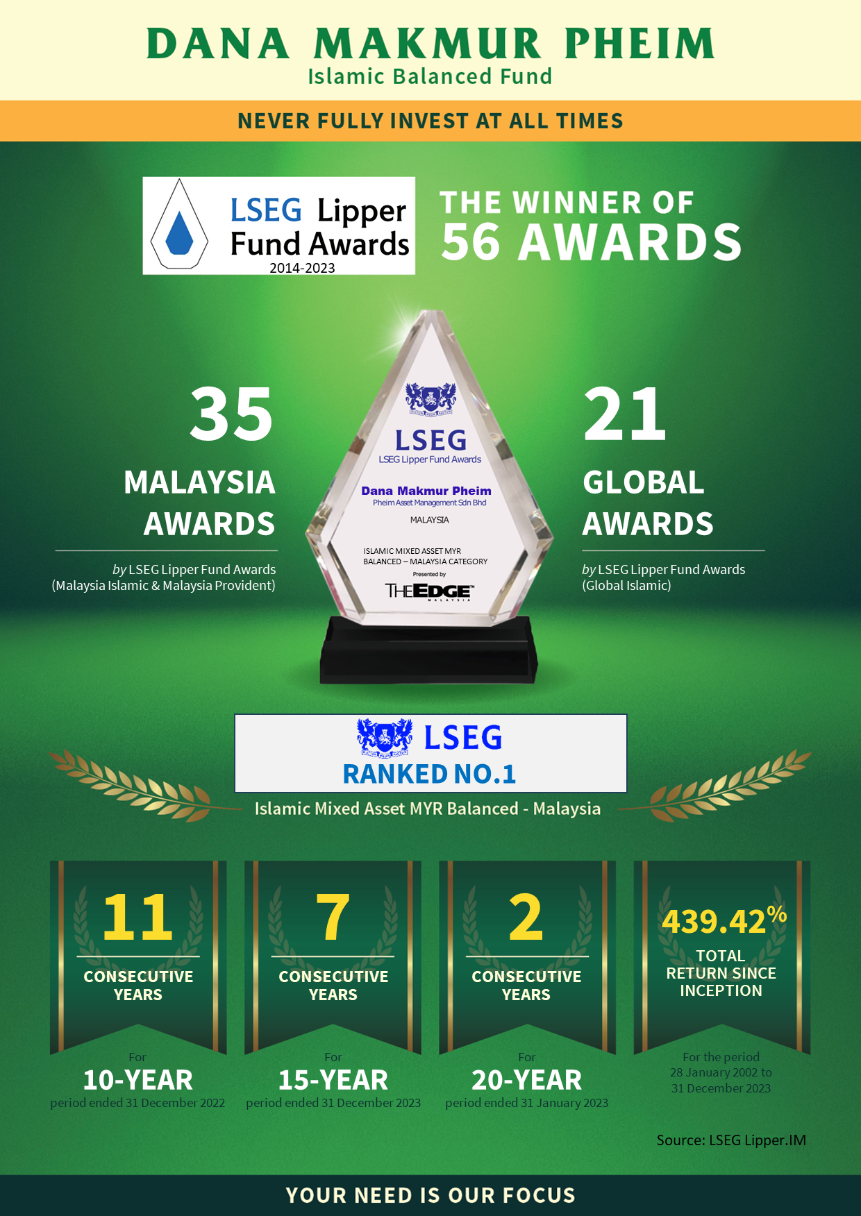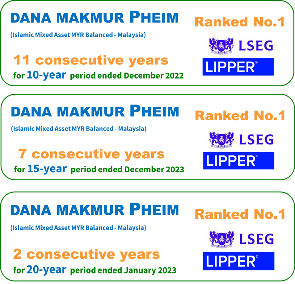 On top of that, Dana Makmur Pheim was also ranked no. 1 for 2 consecutive years by LSEG Lipper in the same category for the 20-year period ended 31 January 2023.